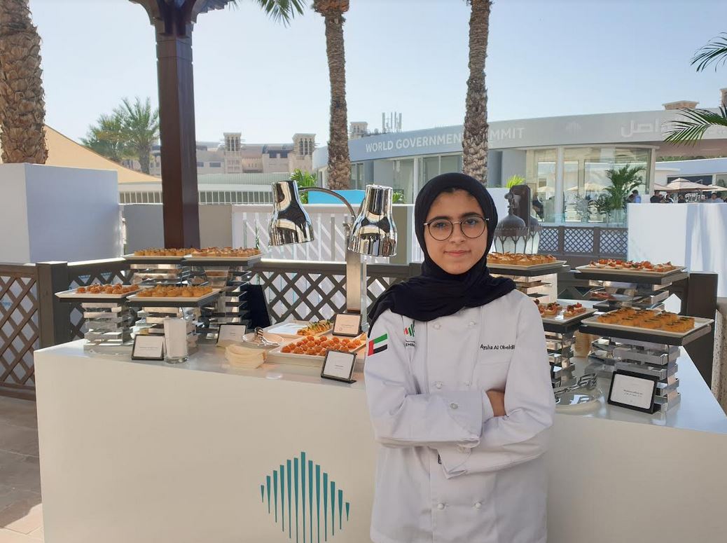 شيف إماراتية بعمر الـ14 عاماً تشارك في القمة العالمية للحكومات بأصناف تحمل لمسة محلية