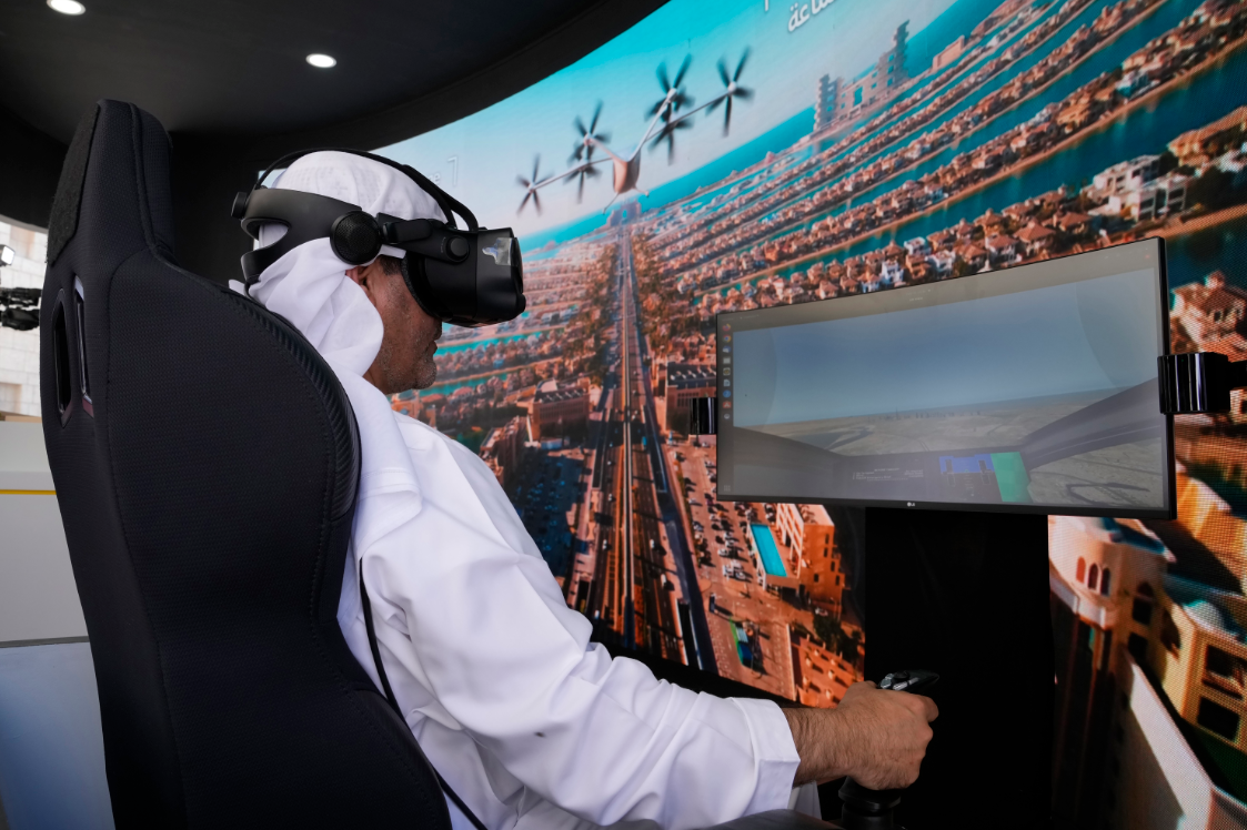 تجربة فريدة يعيشها المشاركون والزائرون من قلب القمة العالمية للحكومات ، اذ يمكنهم التحليق فوق معالم دبي بالانطلاق من محطة التاكسي الجوي الواقعة بالقرب من محطة مترو دبي طيران الامارات ، والتجول بين الأحياء المحيطة بطائرة مروحية تتسع لـ 4 ركاب، وذلك باستخدام تقنية الواقع الافتراضي المعزز التي توفرها هيئة الطرق والمواصلات في دبي في منصتها التي تعرض فيها منصة هيئة الطرق والمواصلات في القمة العالمية للحكومات، تعرض فيها خططها المستقبلية المتعلّقة بالتصاميم والمواقع المحتملة لمحطات تشغيل التاكسي الجوي، وشركاءها الذين تجري حالياً التفاوض معهم لعمليات التشغيل والاستثمار في البنية التحتية المطلوبة لهذا النوع من النقل المستدام فائق التطوّر.