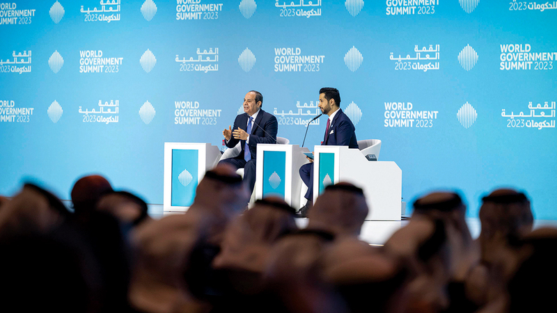 شهد صاحب السمو الشيخ محمد بن زايد آل نهيان رئيس الدولة، وصاحب السمو الشيخ محمد بن راشد آل مكتوم، نائب رئيس الدولة رئيس مجلس الوزراء حاكم دبي، جلسة حوارية رئيسة للرئيس المصري عبدالفتاح السيسي، ضمن فعاليات القمة العالمية للحكومات 2023 التي انطلقت أمس في دبي.