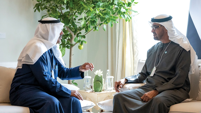 فقد التقى صاحب السمو الشيخ محمد بن زايد آل نهيان، كلاً على حدة، سمو الشيخ أحمد نواف الأحمد الصباح رئيس وزراء دولة الكويت الشقيقة، ورئيس وزراء الجمهورية اليمنية الشقيقة معين عبدالملك، ورئيس حكومة إقليم كردستان العراق مسرور بارزاني، ورئيس جمهورية سيشل وافل رامكالاوان، ورئيس جمهورية الباراغواي ماريو عبدو بينيتيز، ومدير عام صندوق النقد الدولي كريستالينا جورجيفا.