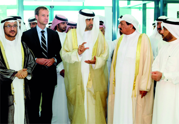حاكم عجمان يستمع إلى شرح من وزير الصحة عن مؤتمر السكري. تصوير: تشاندرا بالان