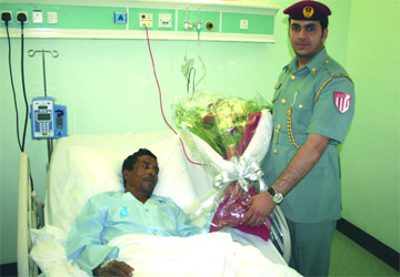 وزّع وفد من قسم المرور والدوريات في مديرية شرطة العين، أول من أمس، باقات ورد، وهدايا وحلوى على مصابي الحوادث في مستشفى العين الحكومي، واطمأن على أحوالهم الصحية، كما تم توزيع نشرات توعية على السائقين والجمهور في محطات البترول والأماكن السياحية في مناطق العين، لتذكيرهم بسلامة الطريق والقيادة الآمنة.
