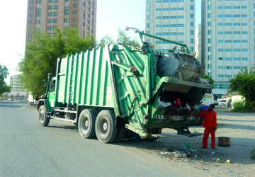 عمال النظافة يتولون رفع النفايات من الشوارع. الإمارات اليوم