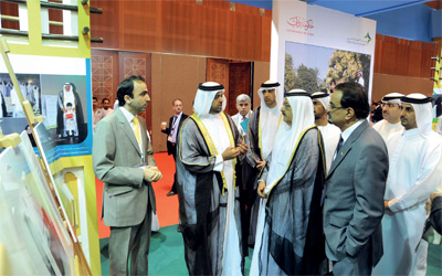 حمدان بن راشد يستمع إلى شرح عن المركز الجديد. من المصدر
