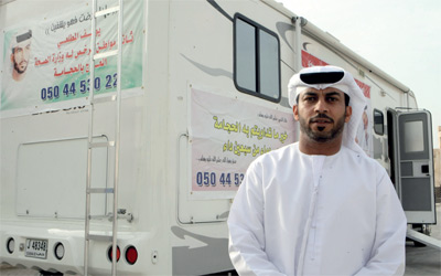 وتابع المطلعي «زودنا العيادة المتنقلة بفواصل لضمان خصوصية المريض، ومنحدر معدني للتيسير على المرضى والمسنين وذوي الإعاقة في الدخول والخروج للعيادة»، لافتاً الى ان كثيراً من مكونات العيادة تم تصنيعها بخبرات محلية في ورش في خورفكان والفجيرة.