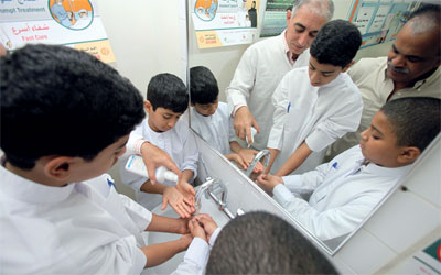 أطلقت وزارتا الصحة والتربية والتعليم حملة «الطالب النظيف»، التي تهدف إلى نشر الوعي الصحي لنحو 140 ألف طالب وطالبة من المدارس الحكومية والخاصة في إمارات دبي والشارقة والفجيرة وأم القيوين ورأس الخيمة وعجمان. وتهدف الحملة إلى تعزيز جهود نشر الوعي الصحي بين الأطفال في الدولة من عمر ست إلى ثماني سنوات في المدارس. وأكدت مدير الإدارة المركزية للصحة المدرسية في وزارة الصحة، الدكتورة مريم المطروشي، ضرورة تعزيز مفهوم النظافة بين الطلاب، ورفع مستواهم الصحي للتقليل من الإصابة بالأمراض المعدية والحفاظ على صحتهم، مشيرة إلى أنه لتحقيق هذه الأهداف تم إطلاق حملة «الطالب النظيف» بالتعاون بين وزارتي التربية والتعليم والصحة.