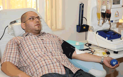 وأضاف أن الأجهزة الجديدة يتم بواسطتها سحب الدم من المتبرع وفصل المكونات الدموية في آن واحد، حيث يتم الاحتفاظ بسائل كرات الدم الحمراء وإسترجاع مادة البلازما إلى الشخص المتبرع مع المادة المانعة للتجلط.