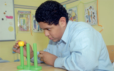 طفل متوحد يؤدي إختباراً. الإمارات اليوم