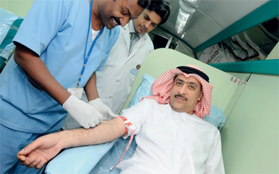 الرئيس التنفيذي لـ«المصرف» خلال تبرعه بالدم. من المصدر