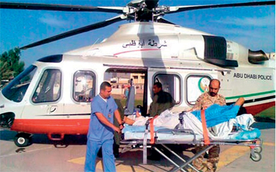 وتفصيلاً، بينما كانت طائرة الإسعاف الجوي والتصوير الحراري التابعة لإدارة جناح الجو في شرطة أبوظبي تؤدي مهمة الدوريات الجوية على مدينة أبوظبي، تلقت بلاغاً من غرفة العمليات المركزية يفيد بوجود حادث مروري في منطقة سويحان، وعلى الفور تحركت الطائرة إلى مكان الحادث وتبين وجود مواطنة مصابة بإصابة بليغة، تم تقديم الإسعافات الأولية لها بمكان الحادث، ثم نقلها إلى مستشفى المفرق.