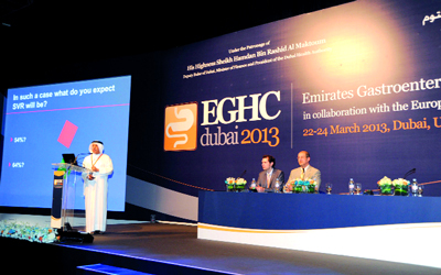 واصل مؤتمر الإمارات لأمراض الجهاز الهضمي والكبد، المنعقد حاليا في مركز دبي الدولي للمؤتمرات والمعارض، جلساته العلمية بمشاركة أكثر من 600 طبيب وممرض ومختص، من مختلف دول العالم. وقالت رئيسة جمعية الإمارات لأمراض الجهاز الهضمي ورئيسة المؤتمر، الدكتورة مريم الخاطري إن الجلسات العلمية للمؤتمر ركزت على مختلف الجوانب المتعلقة بأمراض الجهاز الهضمي والكبد والتهاب الكبد الوبائي نوع «سي» وعلاجاته الحديثة في الإمارات، وأمراض الكبد وزرع الكبد والتهابات وتقرحات القولون، ومناظير الجهاز الهضمي التشخيصية والتداخلية، وأحدث التقنيات والبروتوكولات والممارسات العلاجية المتعلقة بهذا المجال. وأكدت القيمة العلمية للأبحاث وأوراق العمل التي تتضمنها جلسات المؤتمر، الذي تنظمه شعبة الامارات لأمراض الجهاز الهضمي بجمعية الإمارات الطبية، بالتعاون مع هيئة الصحة في دبي ووزارة الصحة.