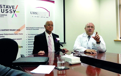 وأضاف، على هامش المؤتمر الصحافي للإعلان عن تدشين مركز علاج أورام الثدي في مستشفى الجامعة في الشارقة، أن «الكشف المبكر يزيد من فرص الشفاء التام من السرطان إلى 95٪، لذا تم إنشاء المركز وبالتعاون مع معهد كوستاف روسي لتستطيع النساء المراجعة في حال الاشتباه في إصابتهن بأي نوع من الأورام والعلاج».