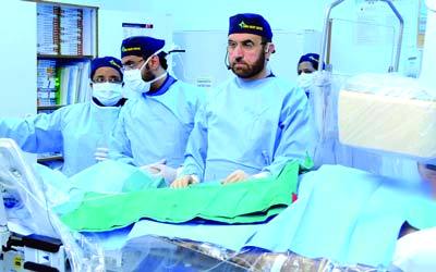 وأوضح أن العملية الأولى كانت لمريض مواطن عمره 59 سنة، يعاني آلاماً في الصدر وذبحة قلبية غير مستقرة، وبعد إجراء الفحوص اللازمة تبين وجود سبعة انسدادات في ثلاثة شرايين، حيث تم زراعة سبع دعامات قابلة للذوبان، موضحاً أنه تم خلال العملية التي استغرقت ساعة واحدة تقديم شرح تفصيلي تعليمي للأطباء في قاعات المؤتمر بفرنسا حول كيفية إجراء هذا النوع من المعالجات التخصصية الدقيقة التي لا تجدي معها العمليات الجراحية.