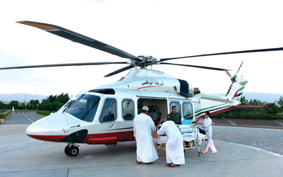تعرض مواطنان لإصابات خطرة في حادث مروري خلال وجودهما في سلطنة عمان. ونقلت طائرة تابعة للقيادة العامة لشرطة أبوظبي المواطنين إلى مستشفى توام في مدينة العين، بسبب سوء حالتهما الصحية.
