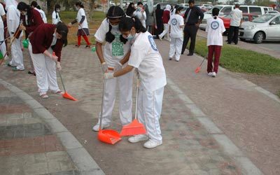 نفّذ مركز شرطة مصفح، بالتعاون مع بلدية مصفح ومدرسة الأرض السعيدة العالمية، مبادرة تحت شعار «بيئتنا الإمارات»، وقام 60 طالباً من المدرسة بمشاركة من فرع الشرطة المجتمعية بتنظيف المنطقة المقابلة للمركز من النفايات، خصوصاً البلاستيكية التي لها أثر خطر في البيئة والثروة الحيوانية.