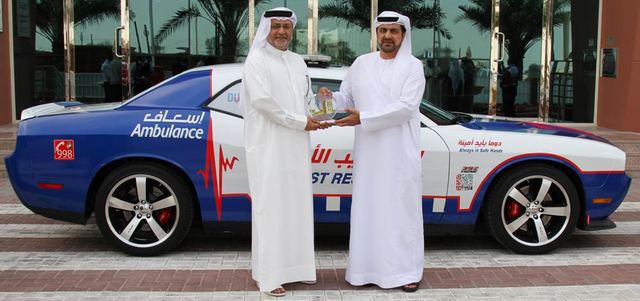 عيسى بن حيدر يسلم السيارة الجديدة إلى «إسعاف دبي». من المصدر