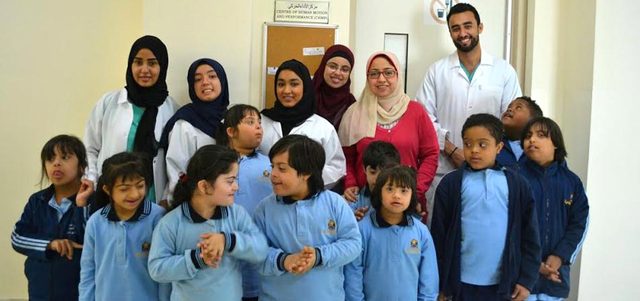 الدكتورة فاطمة حجازي وطلبة مشروع بحث متلازمة داون. من المصدر