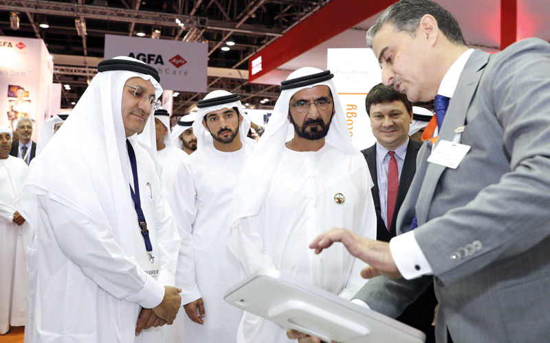 واطلع صاحب السمو الشيخ محمد بن راشد آل مكتوم، خلال الجولة التي توقف فيها عند العديد من منصات العرض، على آخر ما توصلت إليه الشركات العالمية المتخصصة، من تقنيات طبية ودراسات وبحوث وبرامج علمية، واكتشافات حديثة من الأدوية المعالجة لبعض الأمراض المزمنة والخطرة. فقد توقف سموه عند جناح شركة «سيمنس»، حيث اطلع على جديدها من المعدات الطبية، ثم شركة «أولمبيس» اليابانية، الأشهر في العالم في صناعة وتطوير المناظير. ورحب سموه بالشركة بعد انتقال مكتبها الإقليمي إلى دبي، مؤكداً سموه للقائمين على الشركة أنها ستحظى بجميع التسهيلات اللازمة لتطوير مكاتبها ومشروعاتها واستثماراتها في دولة الإمارات والمنطقة. وعرج سموه على جناح هيئة الصحة في دبي، حيث اطلع على أحدث برامجها الذكية لتوفير أفضل وأسرع خدمات الرعاية الصحية للمرضى، ومنها مشروع السلامة والملف الموحد، وغيره من البرامج التطويرية الجديدة، ثم زار سموه جناح هيئة الصحة في أبوظبي، حيث اطلع على جديدها في مجال التجهيزات الطبية والأساليب المبتكرة في الطبابة والعلاج، وتسخير التقنيات لخدمة الإنسان والمريض.
