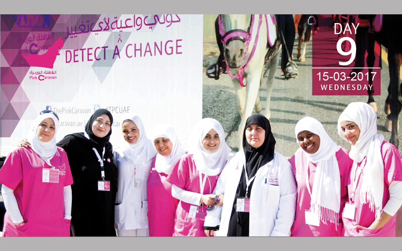 تواصل مسيرة فرسان القافلة الوردية السابعة، التي انطلقت في السابع من الشهر الجاري، تحت شعار «سبع سنوات.. لسبع إمارات»، جهودها الرامية إلى تعزيز الوعي المجتمعي بسرطان الثدي، وبأهمية الكشف المبكر عنه، وتقديم الفحوص المجانية في جميع أنحاء دولة الإمارات.