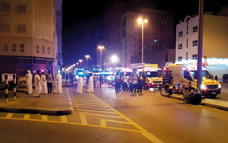 الحريق اندلع السبت الماضي في سوبرماركت داخل بناية. الإمارات اليوم