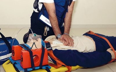 تمكن مسعفو مؤسسة دبي لخدمات الإسعاف بمطار دبي الدولي صالة 1 من انقاذ مريض بالقلب فاجأته نوبة عميقة راح على اثرها في غيبوبة طويلة وفقد الوعي تماما واختفى النبض ما يوحي بخطورة حقيقية على حياته، حيث قام المسعفون بالبحث في تاريخه المرضي حيث تبين انه يعاني فعلا من مشاكل كثيرة في القلب.