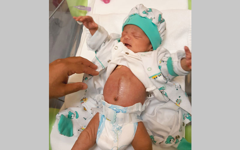 إنقاذ طفل ولد بأمعاء وجزء من المعدة والكبد خارج البطن