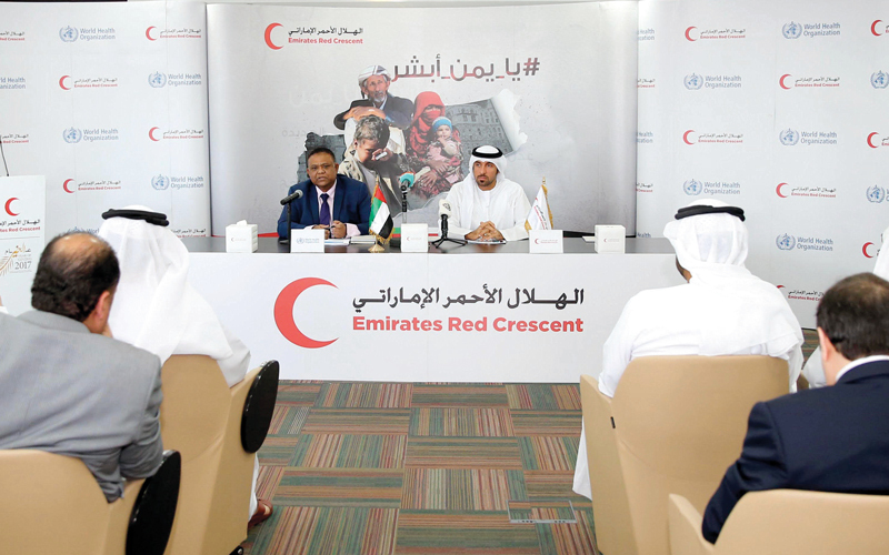 وتفصيلاً، عقدت هيئة الهلال الأحمر الإماراتي، مؤتمراً صحافياً، بمقرها في أبوظبي، لإعلان تفاصيل المبادرات المستقبلية التي ستضطلع بها الهيئة لتخفيف معاناة الأشقاء في اليمن وتحسين سبل حياتهم.