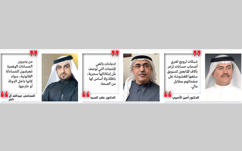 وتابع أن المتضررين من المنتجات التي تروجها تلك الحسابات قادرون على ملاحقتهم قضائياً، مشيراً إلى أن الدوائر المعنية بالأمن الإلكتروني في الدولة قادرة على تحديد مكان وجودهم والوصول إليهم.