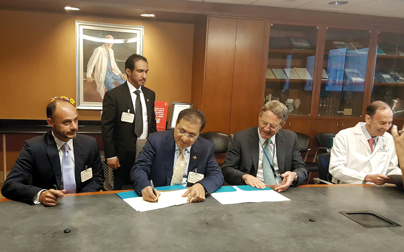 نجحت هيئة الصحة بدبي في تثبيت أولى قواعد إنشاء مركز دبي العالمي لأمراض القلب، بعد أن وثقت تعاونها وشراكتها مع مجموعة هيلث كير، ومستشفى نيويورك بريسبيتيريان، أحد أكبر المستشفيات الجامعية في أميركا، بإبرام اتفاق، أمس، ضمن سلسلة الزيارات التي يقوم بها الوفد الرسمي للهيئة برئاسة رئيس مجلس الإدارة المدير العام للهيئة، حميد محمد القطامي، إلى كبرى المؤسسات الصحية والشركات في الولايات المتحدة.