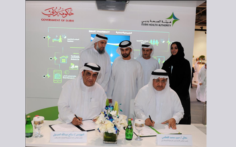 وقع المذكرة عن الهيئة القطامي، وعن شركة مجموعة الإمارات للاتصالات (اتصالات) الرئيس التنفيذي لمجموعة اتصالات المهندس صالح عبد الله العبدولي، وذلك على هامش مشاركة كل من " صحة دبي " و " اتصالات " في معرض جيتكس -2017 .