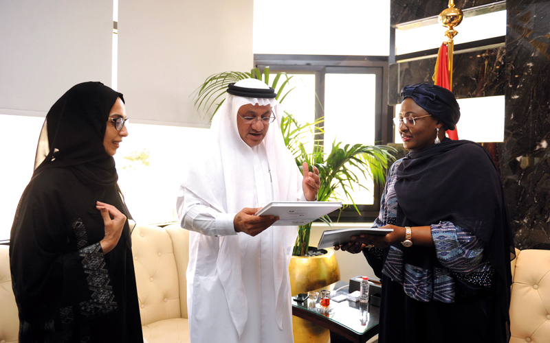 جاء ذلك، خلال لقائه حرم الرئيس النيجيري، عائشة محمد بوخاري، في مكتبه، بحضور المدير التنفيذي وعضو مجلس إدارة المؤسسة، الدكتورة منال تريم، لمناقشة التوسع في خدمات المؤسسة، في نيجيريا.