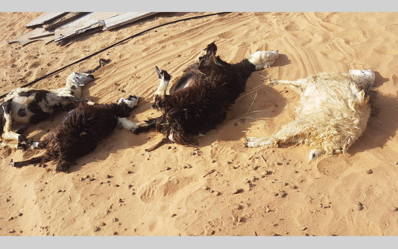 وأضاف الكتبي، أنه في يوم الأحد قبل الماضي حضر أطباء بيطريون تابعون لوزارة التغير المناخي إلى العزبة من أجل أخذ عينة من الأعلاف لفحصها ومعرفة الأسباب الحقيقية وراء نفوق الأغنام، كما أعطوا لقاحات ضد الأوبئة والأمراض لجميع الماشية في العزبة، مضيفاً: «تواصلت مع مركز الشرطة بالمنطقة لتقديم بلاغ حول الواقعة، وعليه تم اتخاذ اللازم».