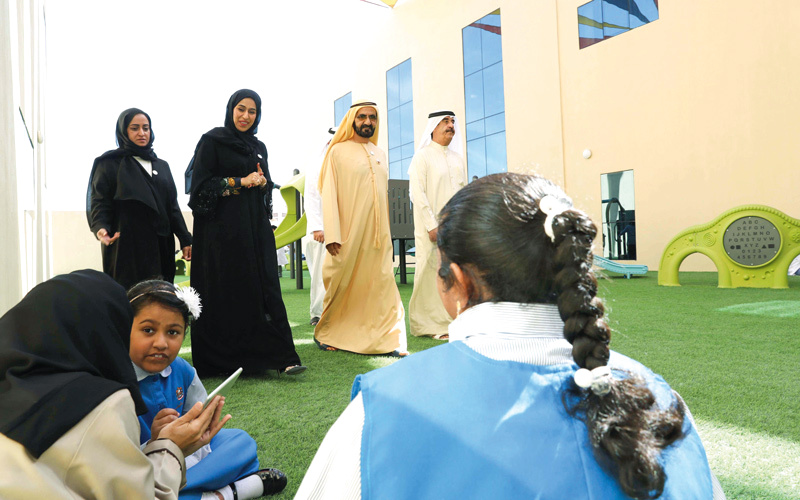 محمد بن راشد وحاكم أم القيوين خلال جولة في «مركز أم القيوين للتوحّد». وام