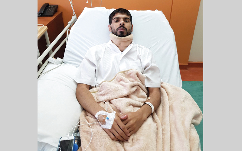 وأشار إلى أن الحادث أسفر عن إصابته بكسر في الرقبة وفقدانه الوعي، متابعاً أنه فقد القدرة على الحركة بعد الحادث، وأن التدخل الجراحي السريع من قبل الفريق الطبي في مستشفى صقر برأس الخيمة أنقذه من الشلل.