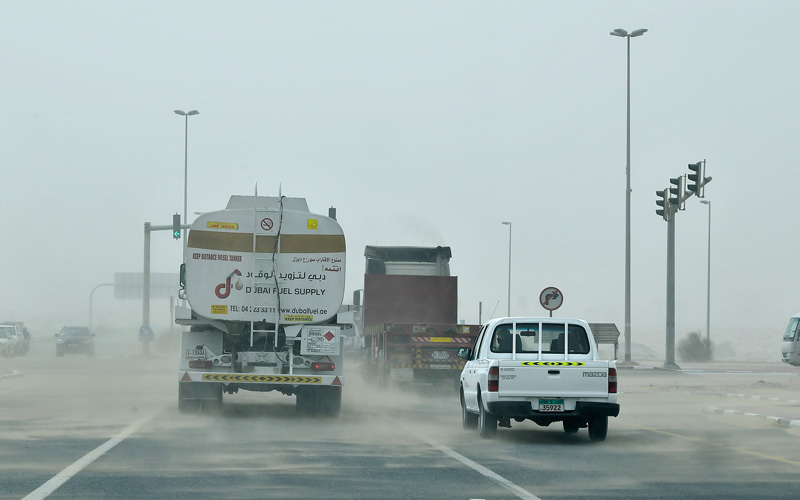 ووقعت معظم أجزاء الدولة، خصوصاً إمارة دبي، تحت تأثير منخفض حراري قوي وعميق، اعتباراً من الجمعة الماضية، الأمر الذي أدى إلى ارتفاع ملحوظ في درجات الحرارة، وتدفق الهواء من مناطق الضغط المرتفع إلى الضغط المنخفض، ما أدى إلى نشاط الرياح الجنوبية الغربية المثيرة للغبار في معظم أجزاء الإمارات. وأفاد رئيس قسم الحوادث والإصابات بمستشفى راشد في دبي، الدكتور فيكتور بطرس، بأن المستشفى تعامل مع حالات عانت أزمات صحية بسبب الغبار وتم إسعافها، محذراً من الخروج في هذا الطقس الذي يعرض صحة كثيرين للخطر.