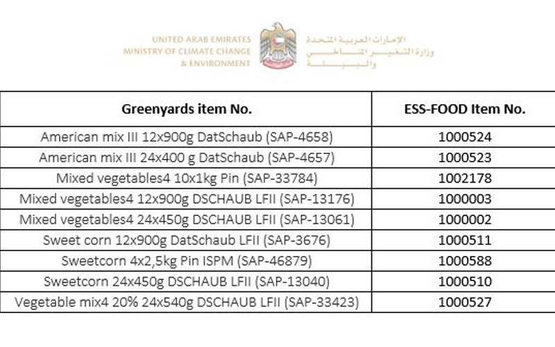 قامت وزارة التغير المناخي والبيئة باتخاذ جملة من الإجراءات الاحترازية على منتجات خضروات و فواكه مجمدة و مصنعة منشأ أوروبي من انتاج شركة Greenyard Frozen ملوثة ببكتيريا الليستيريا انطلاقاً من حرصها على ضمان غذاء سليم وآمن للمستهلكين في الدولة، ,ومن خلال تواصلها مع المنظمات الإقليمية والعالمية والهيئات الدولية للتحقق من سلامة الأغذية الواردة للدولة، وذلك على خلفية قيام السلطات الرسمية في دول الاتحاد الأوروبي بنشر نتائج عمليات رصد وتقصي ظهور حالات مرض الليستريا في تلك الدول والتي أدت لحالات وفاة بحسب ما أدلت به المفوضية الأوروبية ومنظمة الصحة العالمية، حيث كشفت هذه النتائج عن أن مصدر المرض منتجات غذائية ملوثة من منشأة من انتاج شركة Greenyard Frozen، مما حذى بالهيئة بسحب واسترداد المنتج من الأسواق، وتحذير المستهلكين من تناول المنتج.