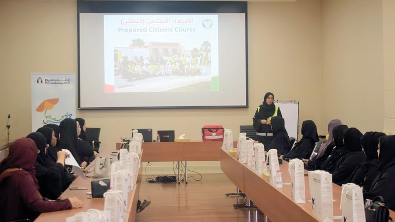نظّمت إدارة التثقيف الصحي، التابعة للمجلس الأعلى لشؤون الأسرة في الشارقة، أمس، ورشة عمل بعنوان «الإسعافات الأولية في حالات الإنهاك الحراري»، بهدف نشر التوعية بمفهوم ومشكلات الإجهاد الحراري وتثقيف المجتمع بأفضل الممارسات الصحية السليمة للوقاية منه، كما ركزت على سبل مكافحة الحرائق والسلوكيات والخطوات الواجب اتباعها في حال حدوث الكوارث.