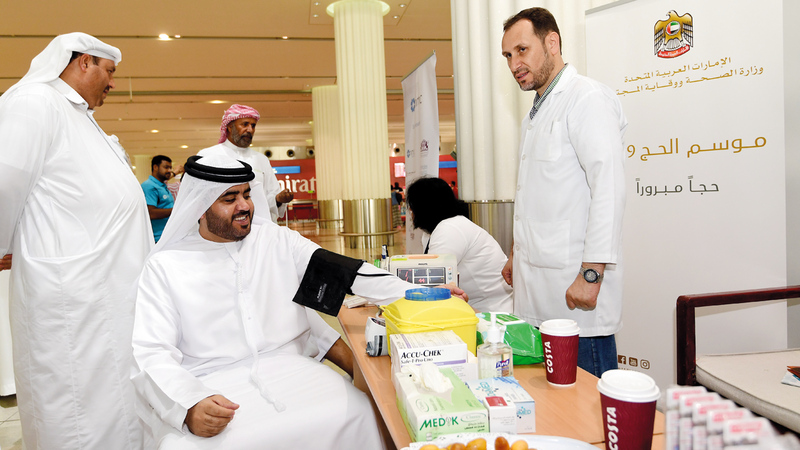 «الصحة» تقدم برامج توعية صحية وفحوصاً للحجاج في مطارات دبي. تصوير: باتريك كاستيلو