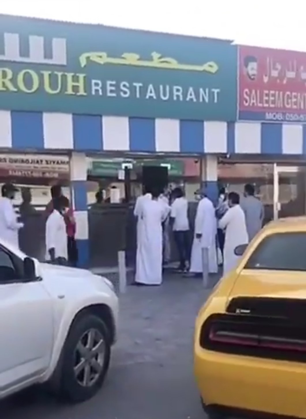 تداول رواد التواصل الاجتماعي فيديو لتجمع عدد من الزبائن أمام أحد المطاعم المتخصصة لبيع السمبوسة والباكورة في إمارة رأس الخيمة، دون أي مراعاة للظروف الصحية الراهنة ودون تطبيق إجراءات التباعد أو ارتداء الكمامات والقفازات من قبل زبائن، حيث طالبوا بلدية رأس الخيمة باتخاذ الإجراءات اللازمة للحد من تجمع الزبائن أمام المطاعم قبل وقت الإفطار من أجل شراء الهريس والسمبوسة والباكورة باعتبارها من الوجبات الشعبية المفضلة لدى المواطنين والمقيمين على موائد الإفطار.