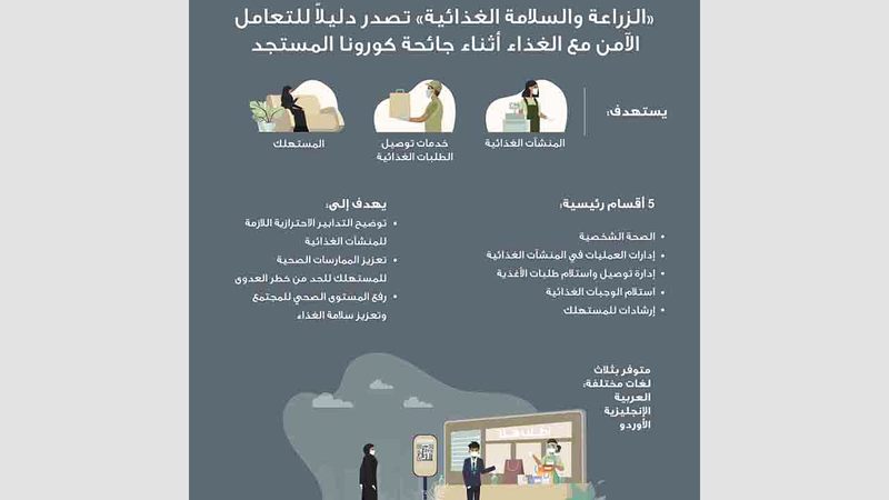 وتضمن الدليل خمسة أقسام، قدمت شرحاً تفصيلياً للضوابط المتعلقة بالسلامة الغذائية، والتدابير الاحترازية التي ينبغي على متاجر بيع المواد الغذائية ومقدمي خدمات توصيل الوجبات، الالتزام بها، مؤكدة أنها تعزز الممارسات الصحية التي تحد من خطر الإصابة بالفيروسات.