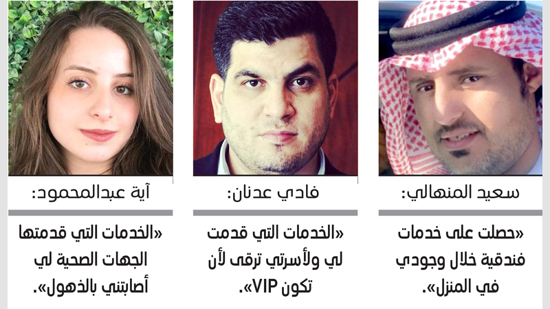 أكد مصابون بفيروس «كورونا» أن الجهات الصحية في الدولة منحتهم رعاية صحية وغذائية وخدمية عالية المستوى، خلال وجودهم في الحجر الصحي الفندقي والمنزلي، لا تختلف عن تلك التي تقدم للشخصيات المهمة، أو الـVIP، وفق تعبيرهم.