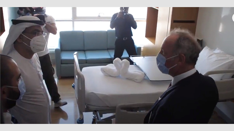 وكيل «صحة أبوظبي» خلال تفقده خلو مستشفى «ميديكلينك» شارع المطار من مرضى «كوفيد-19». من المصدر