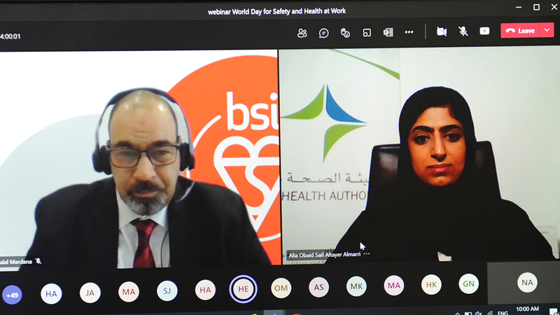 نظّمت هيئة الصحة في دبي، بالتعاون مع بلدية دبي، ومعهد المعايير البريطانية (BSI)، ورشة توعية افتراضية بعنوان: «الصحة والسلامة في مكان العمل في ظل جائحة (كوفيد-19)، بمشاركة أكثر من 300 شخص من داخل الدولة وخارجها، وتهدف الورشة لنشر الوعي الصحي، وذلك بمناسبة اليوم العالمي للسلامة والصحة في مكان العمل.
