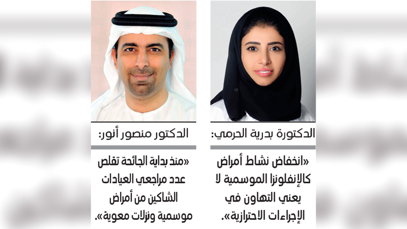 وقالت استشاري الصحة العامة، نائب رئيس جمعية الإمارات للصحة العامة، الدكتورة بدرية الحرمي، إن الإجراءات الاحترازية للوقاية من فيروس «كورونا» مثل التباعد الجسدي ولبس الكمامات، والنظافة الشخصية وغسل اليدين واستخدام المعقمات باستمرار، بالإضافة إلى اعتماد التعليم والعمل عن بُعد وعدم الاختلاط بالمرضى، خفضت معدل الإصابات وانتشار المرض ليس فقط إصابات «كورونا» وإنما في إصابات بعض الأمراض الفيروسية والموسمية مثل الزكام والإنفلونزا الموسمية ونزلات البرد.