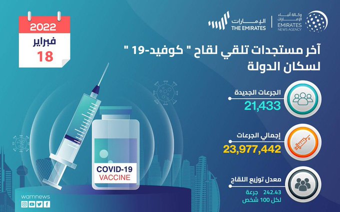 أعلنت وزارة الصحة ووقاية المجتمع عن تقديم 21.433 جرعة من لقاح "كوفيد-19" خلال الساعات الـ 24 الماضية وبذلك يبلغ مجموع الجرعات التي تم تقديمها حتى اليوم 23.977.442 جرعة ومعدل توزيع اللقاح 242.43 جرعة لكل 100 شخص.