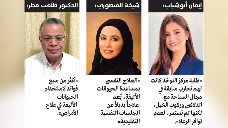 وشرحت المنصوري أن «العلاج النفسي بمساعدة الحيوانات الأليفة، يُعد علاجاً بديلاً عن الجلسات النفسية التقليدية، أو أحياناً يكون علاجاً مكملاً لتلك الجلسات. ويعرف عادة بأنه علاج نفسي يشمل إدخال أو تضمين الحيوانات في الإطار العلاجي، حيث يتم استخدام بعض الحيوانات الأليفة المدربة، مثل الخيول والكلاب والأرانب والأسماك والطيور، لتحسين الأداء الاجتماعي والنفسي والتكيفي للأطفال والبالغين، خصوصاً بعد تعرضهم لصدمات قوية أو خبرات سلبية مثل المرض أو الفقد أو العنف والإساءة والاستغلال».