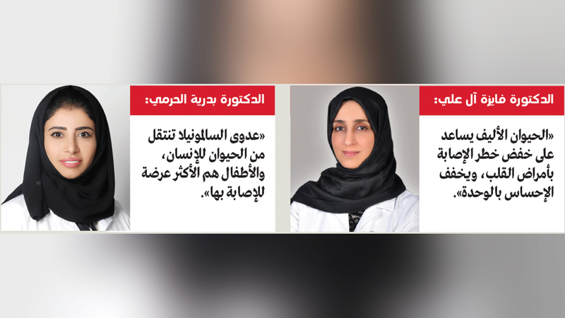 وقالت استشارية الأمراض الجلدية وباثولوجيا الجلد رئيسة قسم الأمراض الجلدية في مستشفى القاسمي، الدكتورة فايزة آل علي، إن اقتناء الحيوانات الأليفة أصبح أمراً منتشراً ومتعارفاً عليه بين الناس، وعلى الأغلب يعود ذلك لكثرة فوائدها للأطفال والكبار على حد سواء، فهي تساعد على خفض خطر إصابة الشخص بأمراض القلب، وتخفف القلق والتوتر والاكتئاب، والإحساس بالوحدة. كما يمكنها أن تحسن الحالة المزاجية وتساعد على تخفيف البدانة بسبب الحركة المستمرة واللعب معها، كما أن الاعتناء بها يحسن سلوك الأطفال ويعلمهم الاعتناء بالآخرين، وتحمل المسؤولية، ويؤثر إيجابياً في الناحية البيولوجية للطفل، من حيث تعزيز إفراز هرمون السعادة، وتعزيز الثقة بالنفس لدى الطفل من خلال تأدية المهام وإنجازها، والتغلب على المخاوف».