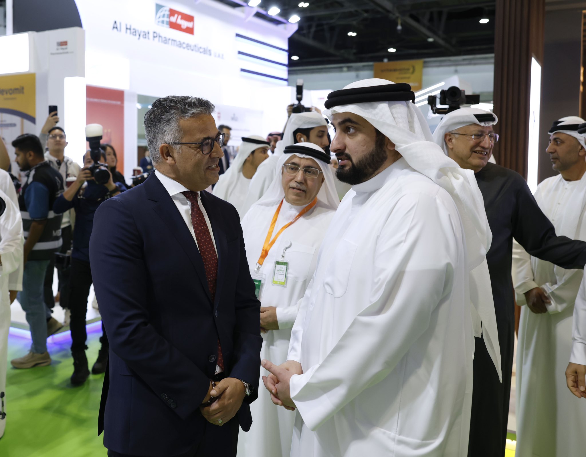 ورافق سموه كل من عبدالرحمن بن محمد العويس، وزير الصحة ووقاية المجتمع، والدكتور عامر شريف، المدير التنفيذي لدبي الصحية، وعوض صغير الكتبي المدير العام لهيئة الصحة في دبي، وناصر البدور، الوكيل المساعد لوزارة الصحة ووقاية المجتمع، والسفير الدكتور عبدالسلام المدني، الرئيس التنفيذي لمؤتمر ومعرض دوفات، حيث زار سموه عددا من أجنحة الدول المشاركة في المعرض واطلع على أبرز المنتجات الصيدلانية التي تطرحها الشركات وآخر المستجدات والتقنيات المتعلقة بهذا القطاع.