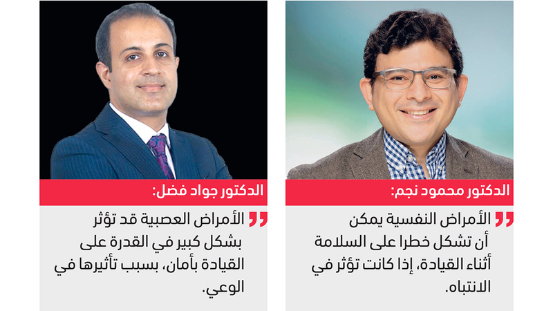 وذكر استشاري الطب النفسي، الدكتور محمود نجم، أن الأمراض النفسية يمكن أن تُشكّل خطراً كبيراً على السلامة أثناء القيادة، خصوصاً إذا كانت تؤثر في الانتباه واتخاذ القرار والاستجابة للمواقف الطارئة.