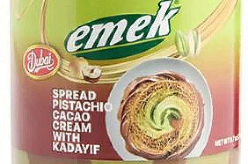 أكدت وزارة التغير المناخي والبيئة وبالتعاون مع السلطات الرقابية المحلية أن منتج Spread Pistachio CaCao Cream With Kadayef للعلامة التجارية Emek والتي يتم إنتاجها خارج الدولة وغير موجودة في الأسواق المحلية، يتم الترويج لها كشوكلاه مستوحاة من نكهات شوكولاتة دبي.